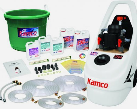 Cleaning the central heating system with flushing machine to improve the flow and efficiency.